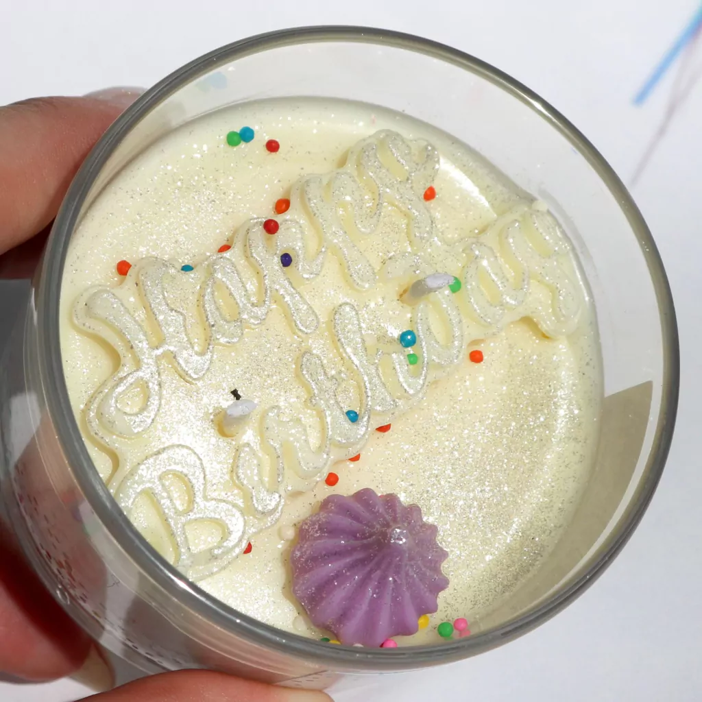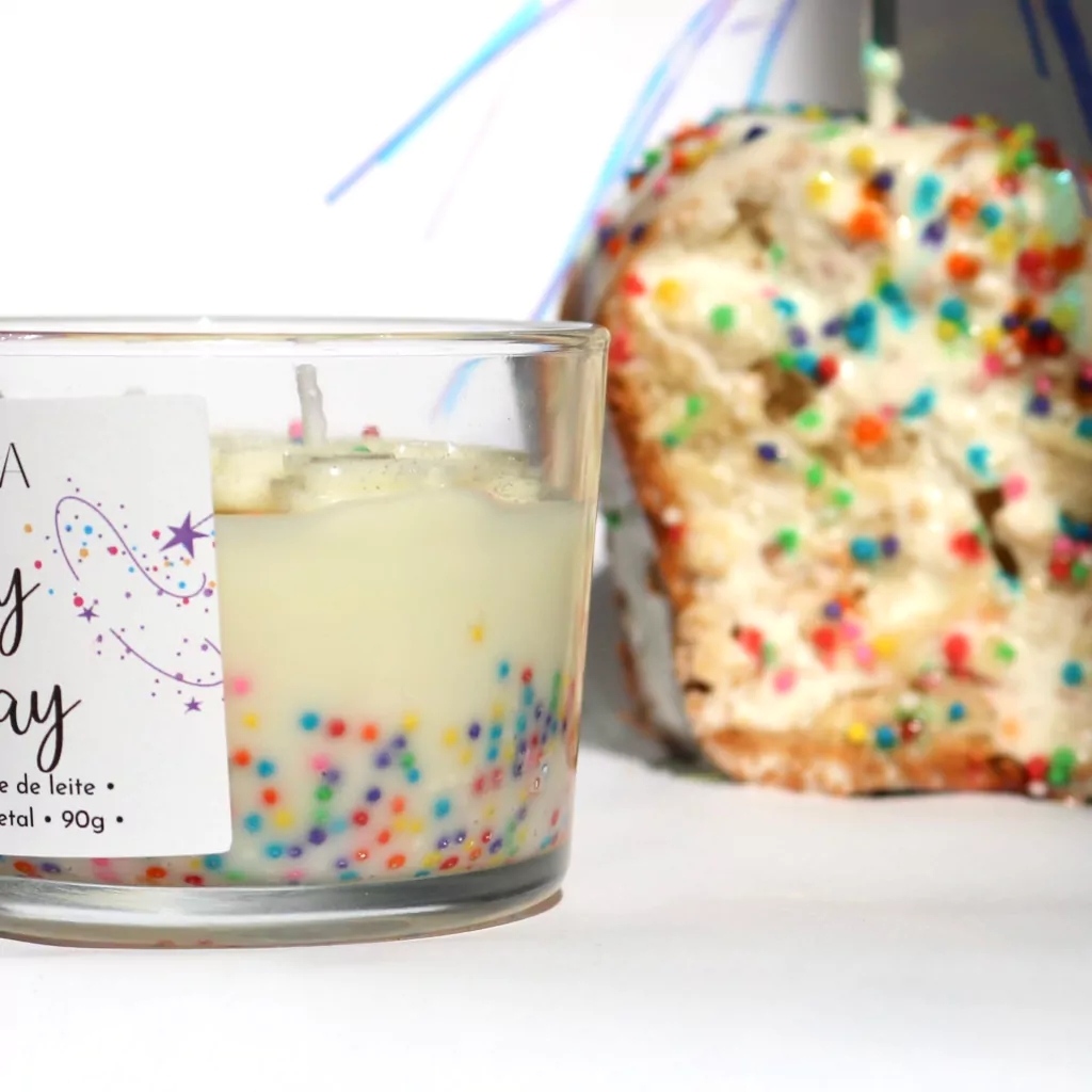 . A vela aromática contém confeitos coloridos para torna-la especial e divertida!