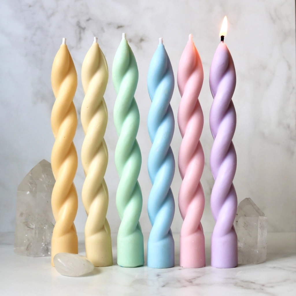 A cor amarela candy da cera deixa a vela castiçal torcida espiral ainda mais linda pois combina com qualquer ambiente e decoração